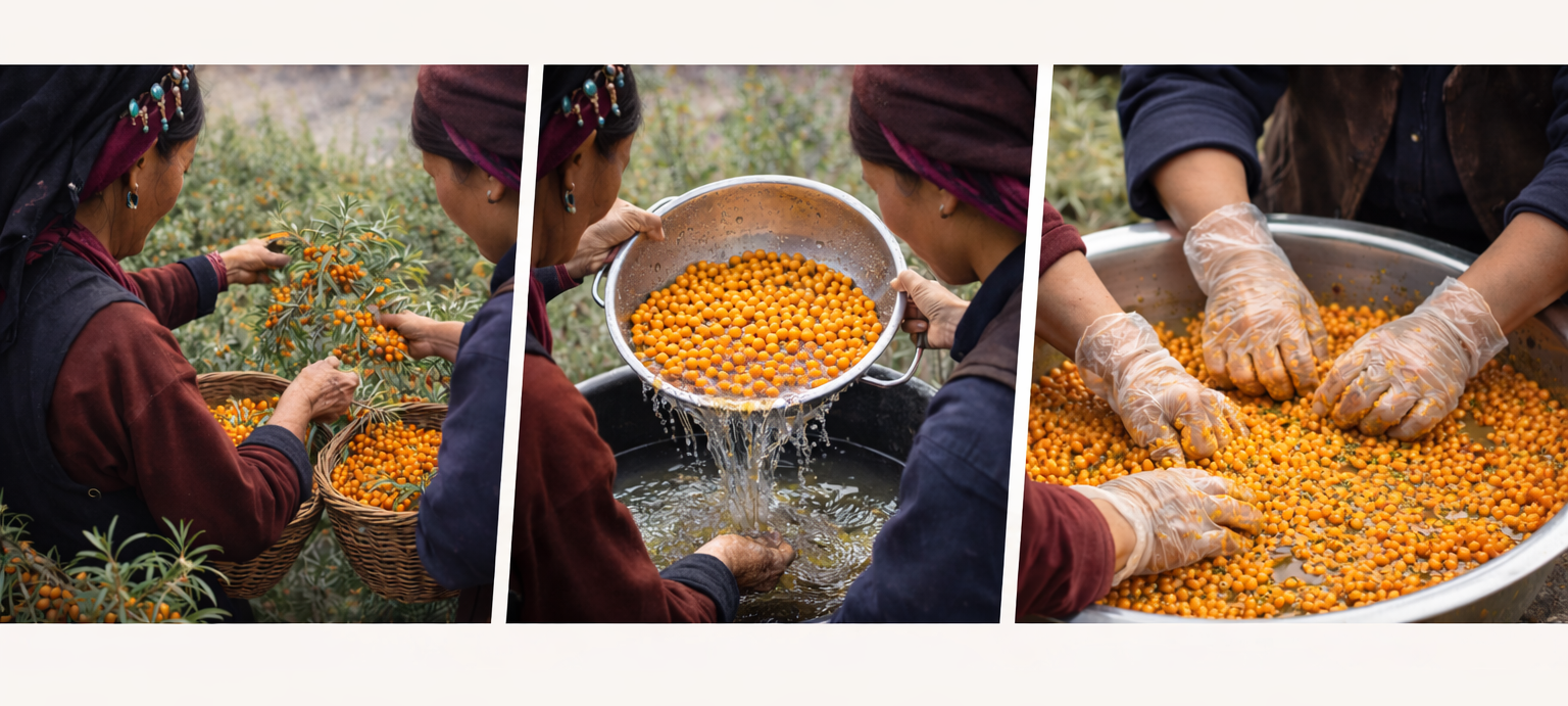 Our flagship Sea Buckthorn Pulp Concentrate is carefully cold-pressed and processed under hygienic conditions to preserve its natural potency. Unlike diluted juices, Araya Earth delivers a concentrated form that allows you to experience the benefits with just a small daily serving.